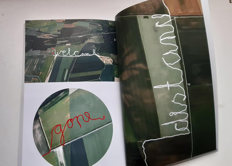 Veronika Olma zeichnet seit 2010 die täglichen Spaziergänge mit ihrem über eine Tierschutzorganisation aus Spanien migrierten Hund Bazi mit GPS auf, wobei die Wege der gemeinsamen Wanderungen, einer kindlichen Handschrift ähnelnd, Worte bilden – teilweise in einem Mix aus Englisch und Deutsch –, die auf Flucht, Seenotrettung, Vertreibung, Heimatsuche und eine zerbrechliche Willkommenskultur anspielen. Diese Form der Spurensicherung, die Olma auch als Fixierung geteilter, aber flüchtiger Lebenslinien sieht, benötigt den vermeintlich objektiven Blick von oben, um entzifferbar zu werden. Ganz nebenbei zeugt die Arbeit von der alltäglichen Verbundenheit der beiden ‚Lauf- und Gefährtentiere‘ Mensch und Hund, die bereits seit Jahrtausenden gemeinsam auf großen und kleinen Wegen unterwegs sind. (…)